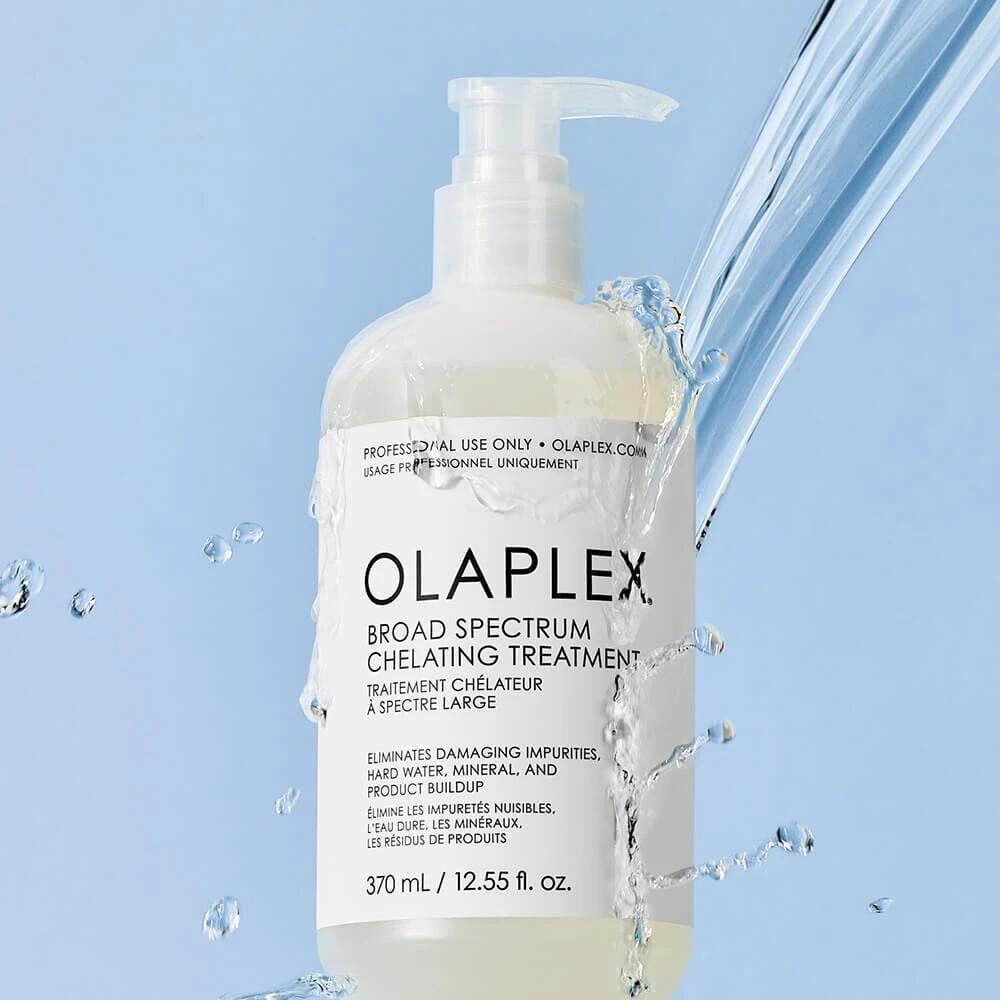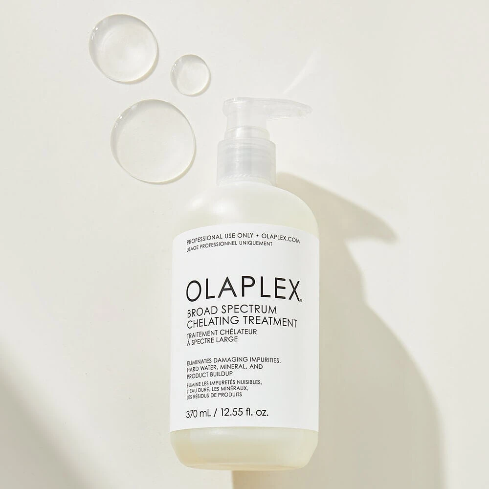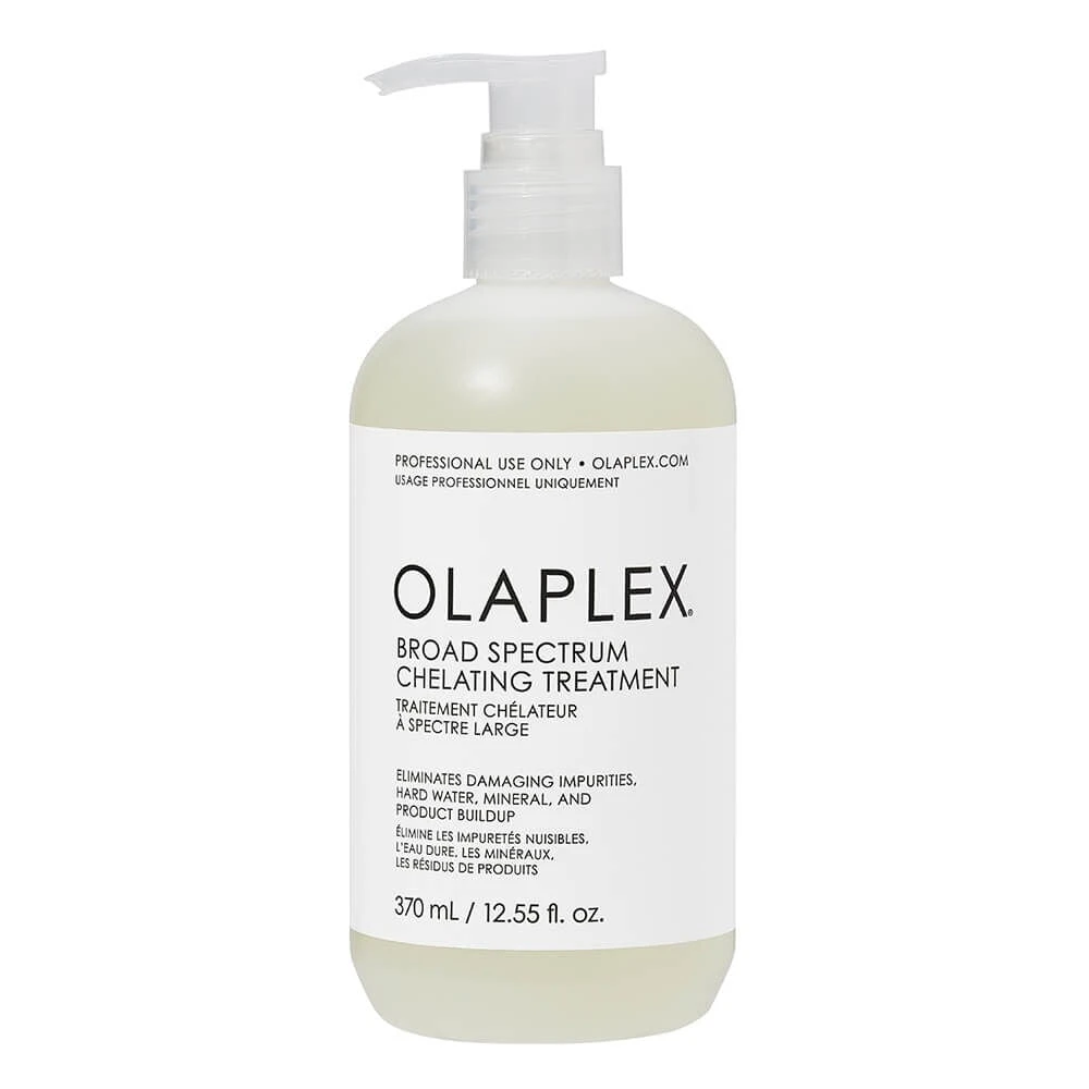 The Olaplex Broad Spectrum Chelating Treatment is a professional-strength, high-potency chelator that deeply cleans hair down to the cortex. With Patented Olaplex Bond Building Technology™, it supports strong bonds during the chelation process. The unique blend removes a wide range of heavy metals, minerals, pollution, chlorine, medications and product build-up without stripping hair of its moisture and essential proteins. The powerful broad-spectrum chelating blend achieves the deepest clarification to create a clean canvas for optimal results from other chemical services that can be compromised by build-up such as keratin treatments, colour and perms. It’s an essential corrective step for clients with build-up from hard water, well water, medications or discoloration from iron and copper deposits.