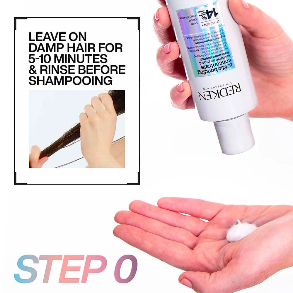 Introducing Redkens latest innovation, Acidic Bonding Concentrate Intensive Pre-Treatment. This acidic, rinse off treatment is enriched with their maximum concentration of citric acid and bonding care complex to offer instant results after just one use. The new step 0 compliments your routine by prepping the hairs canvas and maximising the benefits from the Acidic Bonding Concentrate Shampoo and Conditioner system. This intensive repair formula strengthens hair from the inside-out*, allowing hair to grow 2x stronger*** and look 14x smoother** after just one use.